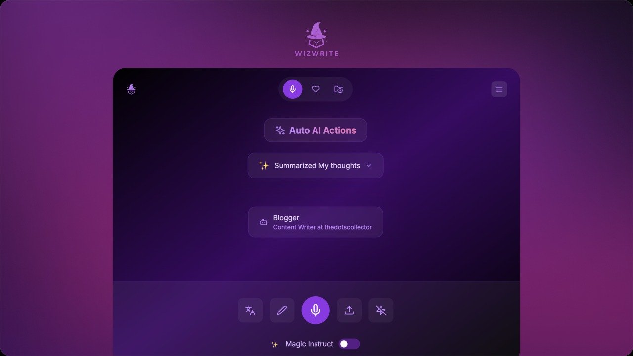 Wiz Write giúp bạn chuyển lời nói thành văn bản và nội dung hoàn chỉnh trong vài giây.